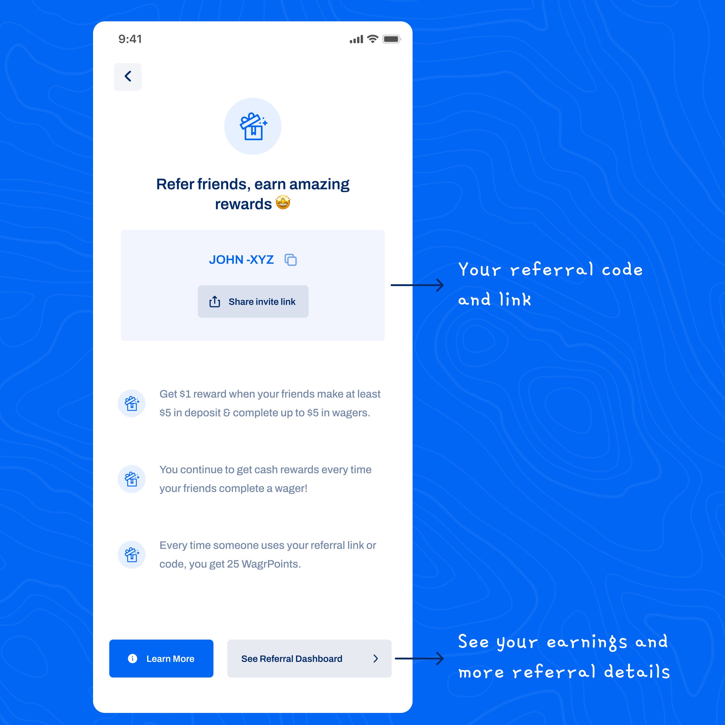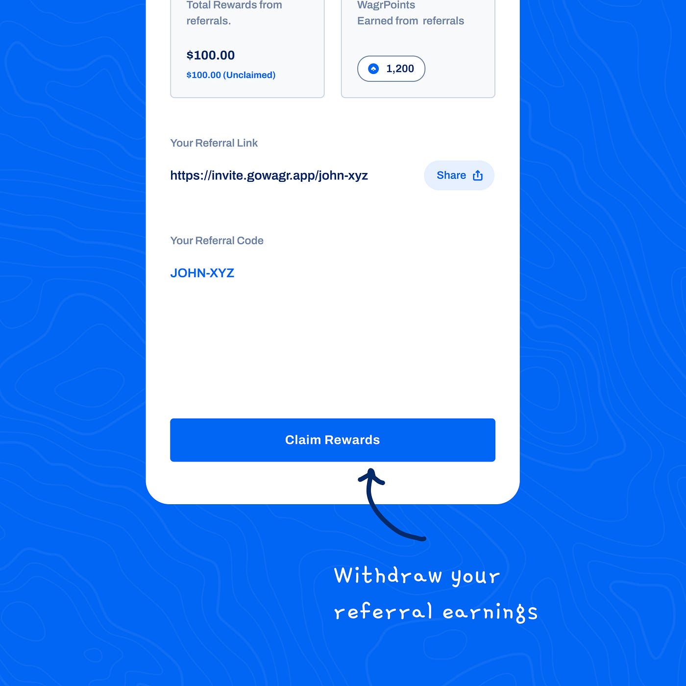 2. Accumulate WagrPoints: Every time someone uses your referral link or code, you’ll rack up 25 WagrPoints. And trust us, there are exciting things on the way for those points, so keep accumulating them! 😉