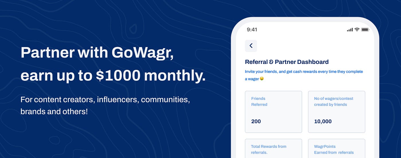 Are you a content creator, influencer, community owner, or brand owner with an audience perfect for GoWagr? Tap into our passive income opportunity, as we roll out our partnership program 🚀 [Learn More]