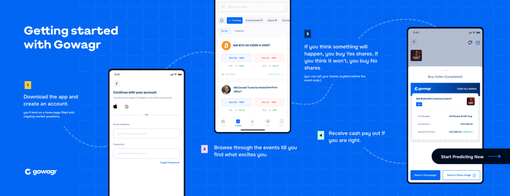 Gowagr is a prediction market platform that allows you to predict the outcome of future events and get cash payouts if you’re correct. But unlike many, it’s one that feels close to culturally charged moments and inspired by the way you already debate, speculate, and share opinions every day.