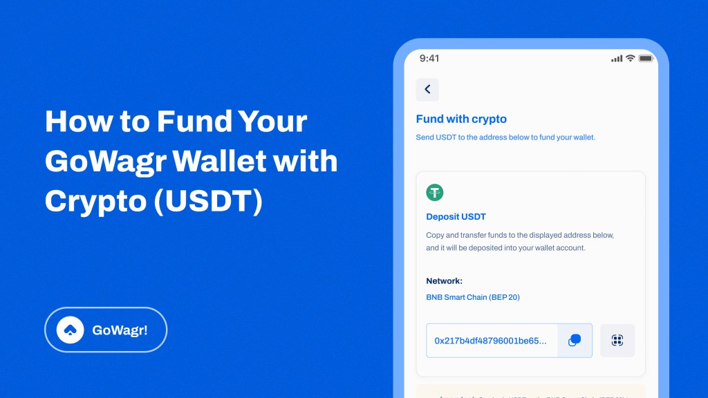 Funding your GoWagr wallet with crypto (USDT) is fast, secure, and convenient. You can deposit USDT in your wallet from anywhere in the world, as long as crypto trading is available in your country.