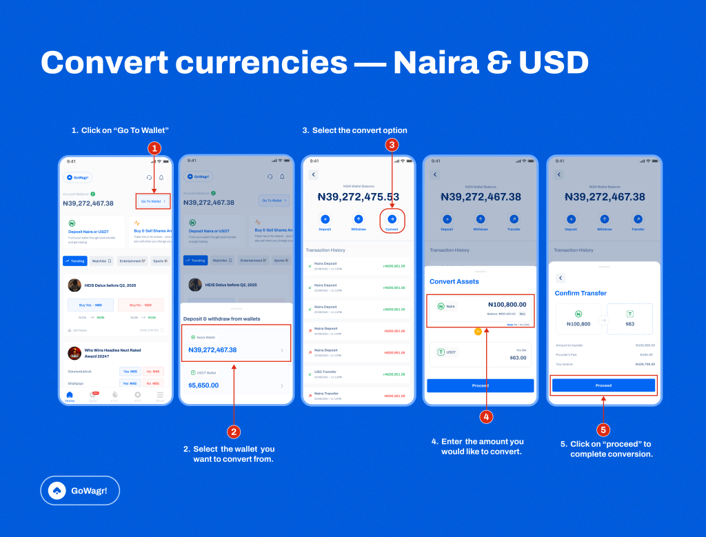 You now have two wallets on GoWagr — one in Naira and one in USD. You can choose which one to view and trade with.